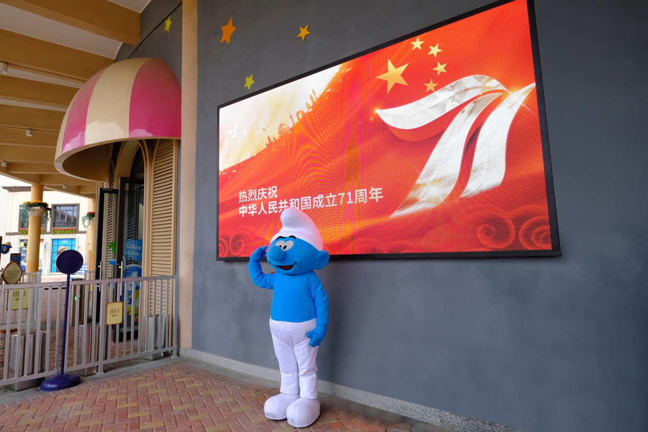 为迎接祖国71周年诞辰,上海世茂蓝精灵主题乐园换装国庆氛围,蓝精灵们也入乡随俗,认真地向五星红旗敬礼,活泼可爱的精灵蓝与庄严肃穆的五星红旗交相辉映,成为乐园内最感动的“红蓝搭配”。国庆期间入园的小朋友都将获得小国旗,在尽情游玩的同时,与蓝精灵们一同为祖国庆生。