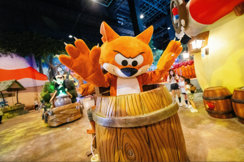 大家是否憧憬过拥有一颗属于自己的圣诞树,在雪花纷飞的冬季里,和家人朋友一起装扮圣诞树,寄送美好的心愿和祝福?走进户外深坑秘境乐园,一颗“自由装扮”的巨型圣诞树映入眼帘,圣诞树上点缀着五彩缤纷的彩带、小巧精美的彩球、金光闪闪的铃铛等,游客依偎在绚丽缤纷的圣诞树下,感受节日的温暖爱意。圣诞树周围还摆放着印有蓝精灵和“大反派”格格巫图案的巨蛋不倒翁,吸引着大小朋友互动玩乐,唤醒童年的乐趣。
