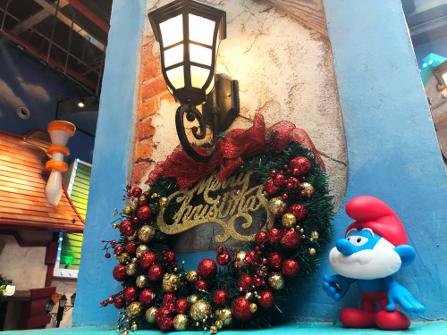 首次在上海庆祝圣诞节的蓝精灵,用善良与欢乐感化了“大反派”格格巫和阿兹猫,邀请他们到蓝精灵村庄一起欢度圣诞时光。蓝精灵早早就为乐园装扮一番,乐园大门伫立着梦幻缤纷的圣诞树,装饰着蓝精灵公仔及圣诞礼盒;园内也布置了浓浓的圣诞氛围,弥漫着欢乐的圣诞音乐。蓝精灵特别准备了“蓝精灵投投乐”趣味游戏,游客参与互动可赢取蓝精灵盲盒、蓝精灵徽章及圣诞帽等专属好礼。